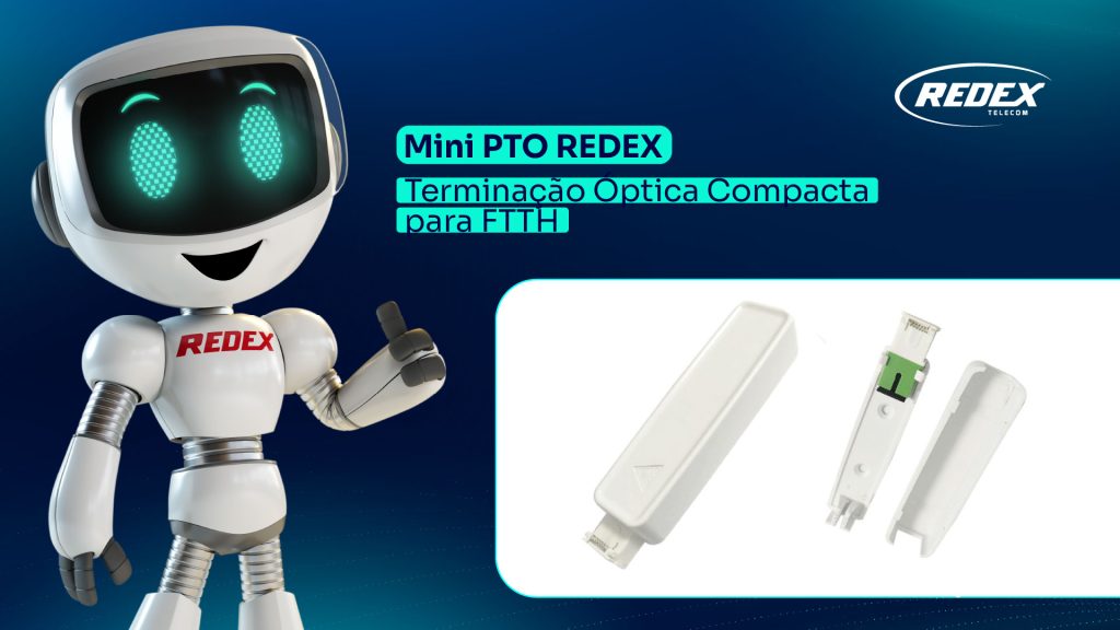 Com dimensões de 100 x 20 x 20 mm, a Mini PTO REDEX é ideal para aplicações internas em redes FTTH, oferecendo uma solução funcional para provedores que buscam padronização e agilidade nas ativações